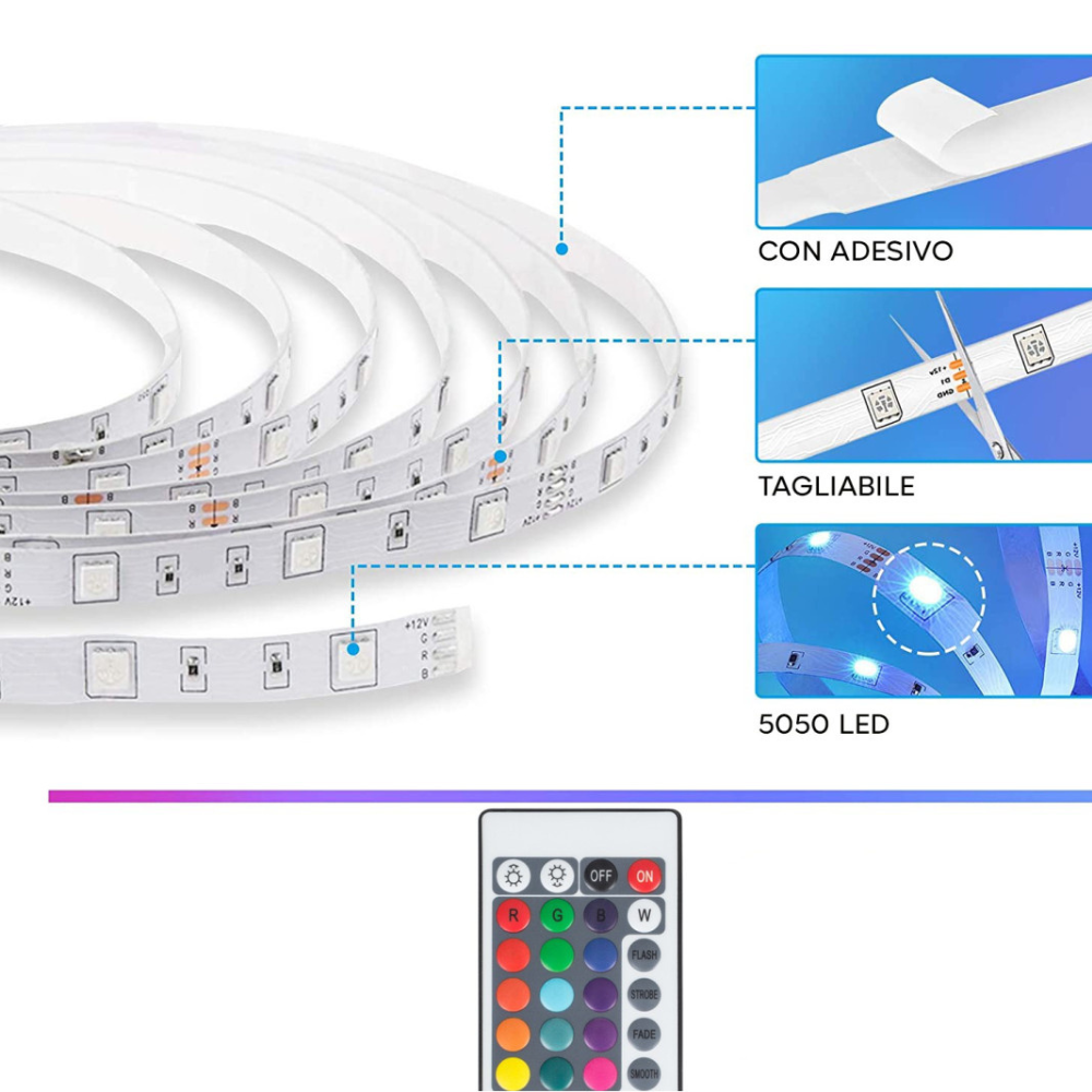 • 5 metri di LED RGB multicolore: illumina con stile qualsiasi ambiente interno
