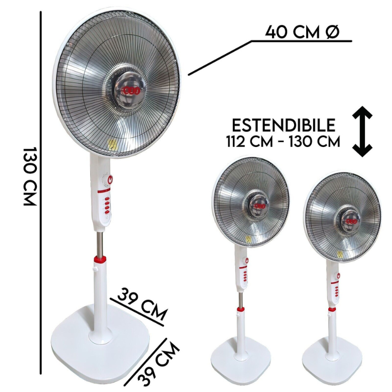Stufa Parabola Elettrica a Carbonio 1000W – Basso Consumo, Anti-Ribaltamento e Oscillante