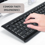 Il kit perfetto per chi cerca praticità, comfort ed efficienza: tastiera a layout italiano QWERTY con 105 tasti e mouse ambidestro compatibile con tutti i principali sistemi Windows. Ideale per casa, ufficio, smart TV e postazioni da lavoro.
