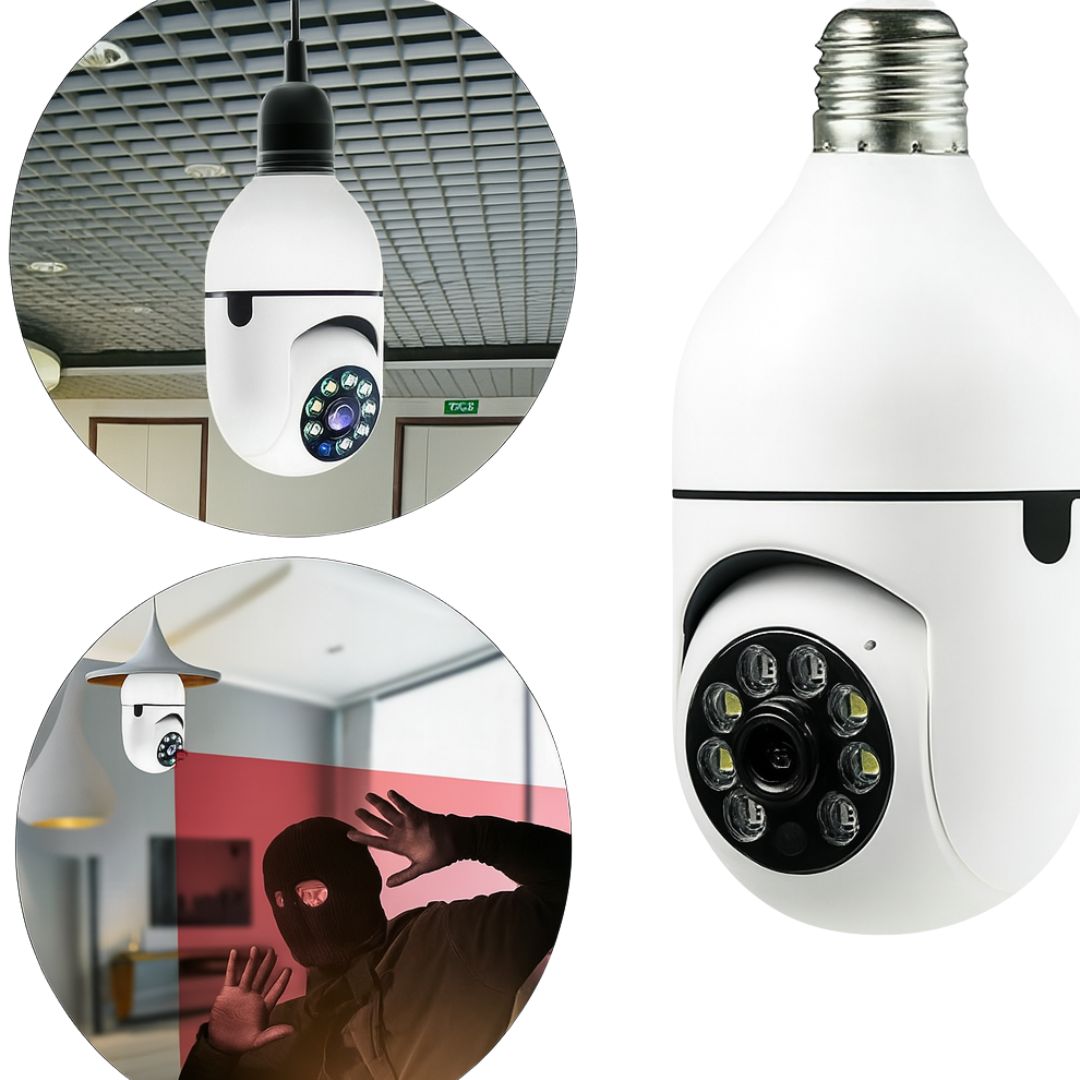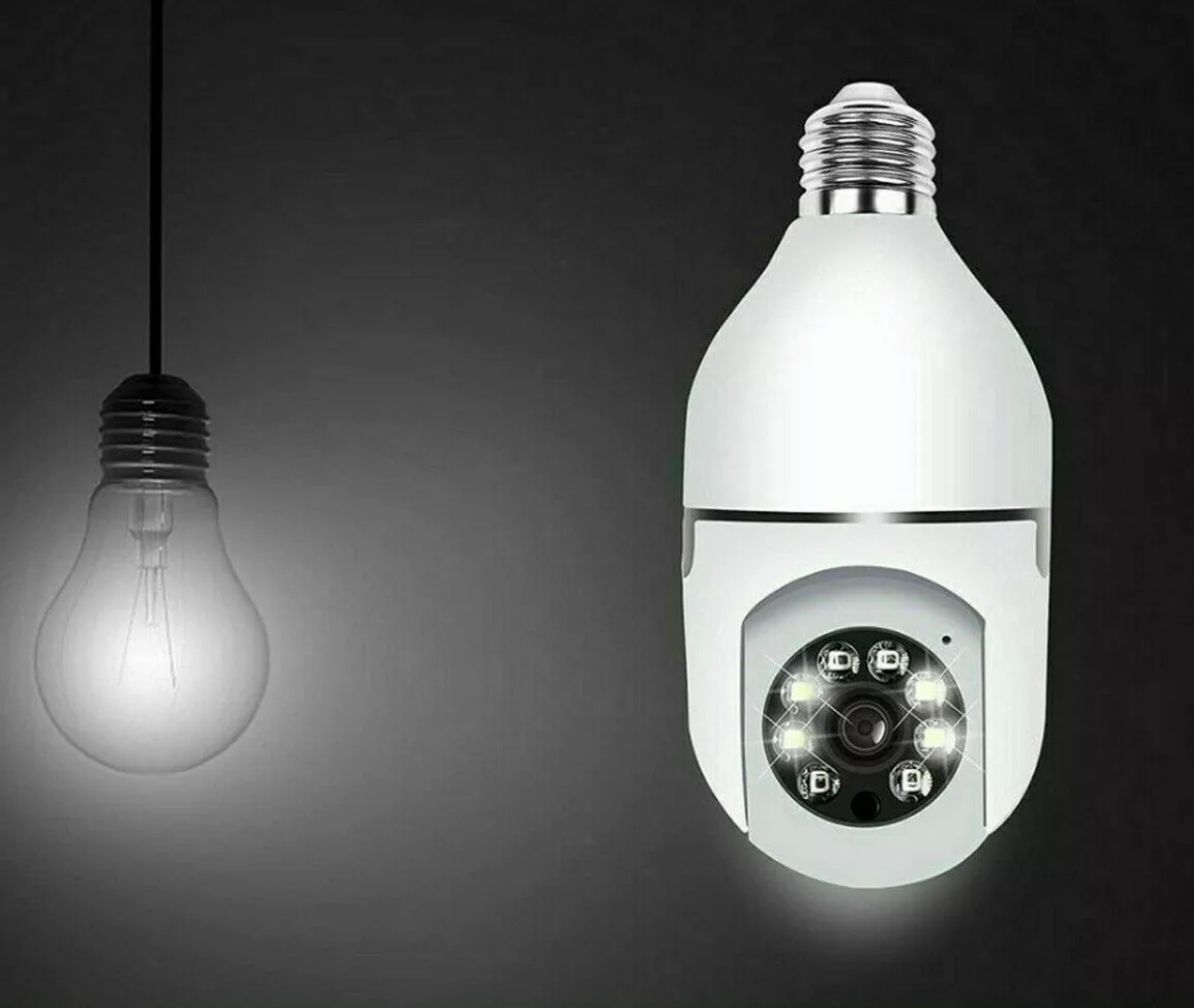 Videosorveglianza discreta e completa con un semplice attacco E27. La telecamera a bulbo LaPaginaDegliAffari si installa come una normale lampadina e offre una visione panoramica a 360°, connessione Wi-Fi, visione notturna a infrarossi e controllo remoto da smartphone.