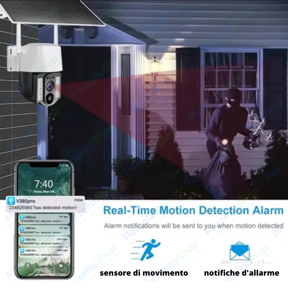 2 recensioni per Telecamera Solare PTZ 4G | 360° Infrarossi, Ricarica Solare, Controllo da Remoto