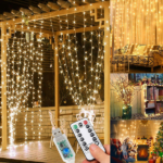 La tenda luminosa 3×3 metri da appendere a finestra, letto, scale, tende o attaccata al soffitto, tetto del gazebo, area per feste, baldacchino ecc. Fornito da 10 ganci. Non sono necessarie fascette o altri accessori.