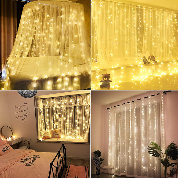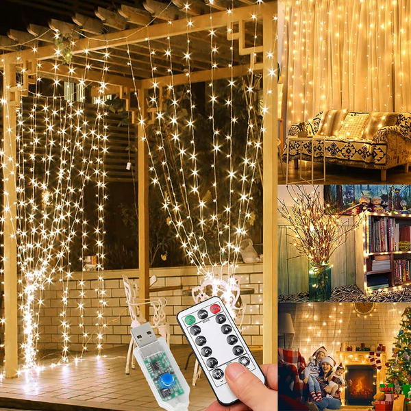 Tenda 300 Luci Led Luminosa 3x3m USB per Giardino e Casa, Luce calda 8 Modalità per Porte, Feste, Cerimonie Tenda 300 Luci Led Luminosa 3x3m USB per Giardino e Casa, Luce calda 8 Modalità per Porte, Feste, Cerimonie