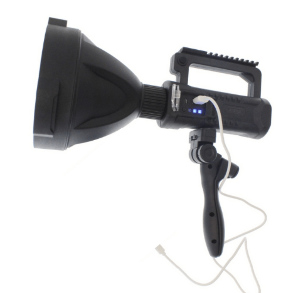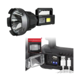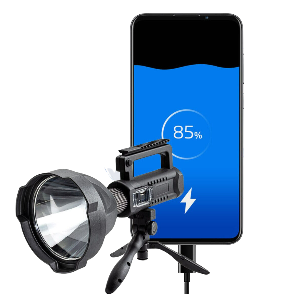 Torcia 150W a LED Raggio Lungo 500m | Ricaricabile USB, Power Bank, IPX6, Pannello Laterale