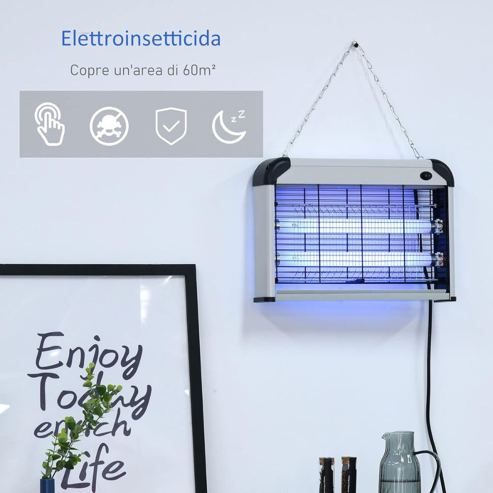 La soluzione definitiva per tenere lontani zanzare e insetti volanti in modo silenzioso ed efficace. Grazie alla doppia lampada UV da 10W e a una potenza complessiva di 20W, questa zanzariera elettrica copre un’area fino a 60 m², ideale per uso interno ed esterno: casa, cucina, giardino, ufficio o veranda.